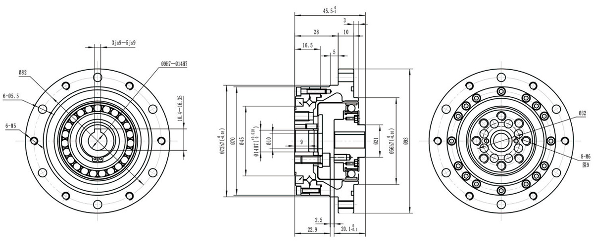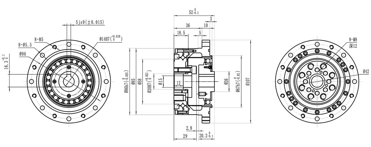 ◆ 结构紧凑,交叉滚子轴承直接输入